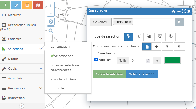 Utilisez simplement l'outil de sélections sur la couche "Parcelle"
